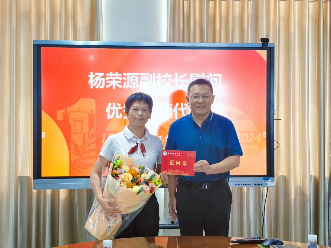 9月9日上午,杨荣源副董事长专程前往ylg060net永利娱高开展教师节走访慰问活动,向辛勤耕耘在教学、科研一线的教职工致以节日的诚挚祝福。ylg060net永利娱高全体领导及教职工代表参加相关活动。