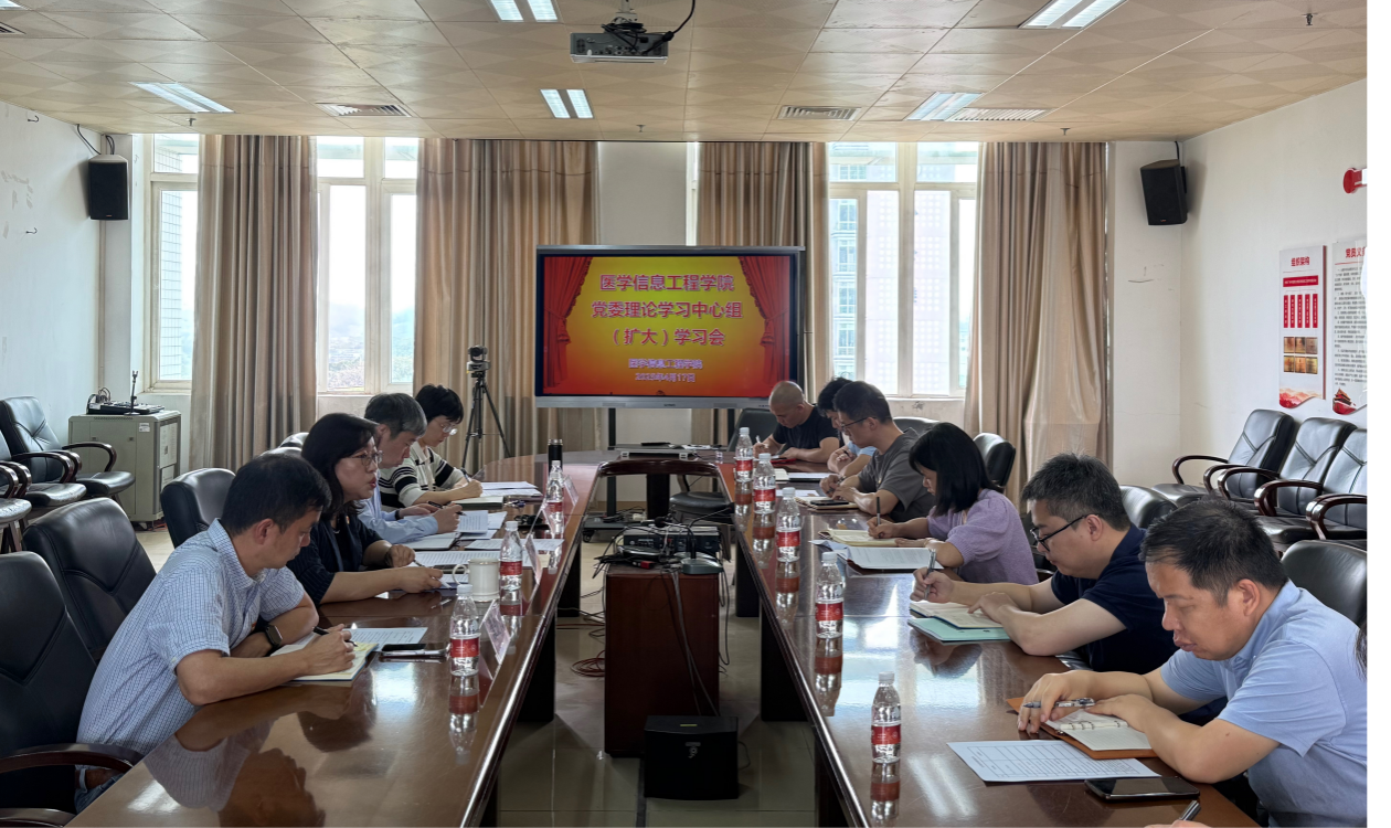 4月17日上午,医学信息工程公司党委理论学习中心组(扩大)学习会在医工楼701会议室召开。公司领导、各党支部书记、教研室负责人等参加学习会。会议由公司党委书记孟楠主持。