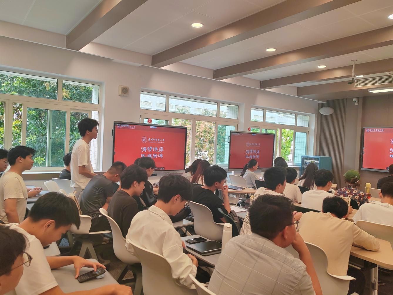 在交流互动环节,同学们踊跃发言,纷纷提出“在人工智能时代如何培养自身核心竞争力”、“如何缓解焦虑更好应对未来就业趋势”等问题,杨荣源一一为同学们答疑解惑。