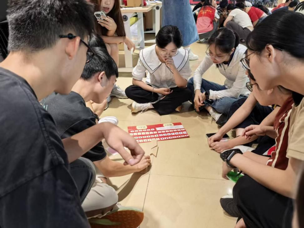 各小组合作完成“T字之谜”拼图任务,在旋转、翻转与沟通中锻炼空间思维与团队协作能力。志愿者积极引导,帮助大家在挑战中体验成功与合作的喜悦。